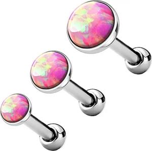 Tragus Piercing Helixpiercing Helix Ohr Cartilage Knorpel Stecker mit flachen Opal Steinen Rund Silber Pink Set