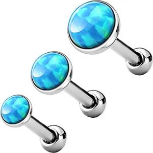 Tragus Piercing Helixpiercing Helix Ohr Cartilage Knorpel Stecker mit flachen Opal Steinen Rund Silber Türkis 3mm