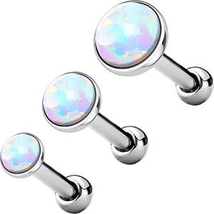 Tragus Piercing Helixpiercing Helix Ohr Cartilage Knorpel Stecker mit flachen Opal Steinen Rund Silber Weiß Set