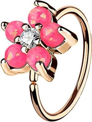 Universal Piercing Ring Continuous mit mit Opal Kristall Blume Motiv Für Ohr Nase Lippe Brust Intim Septum Tragus Helix Rose Gold Pink