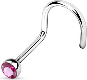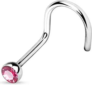 1,0mm Nasenstecker gebogen Zirkonia Kristall Strass Nasen Piercing Spirale Stud Nasenring Z325 Farbe Pink/Rosa