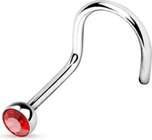 1,0mm Nasenstecker gebogen Zirkonia Kristall Strass Nasen Piercing Spirale Stud Nasenring Z325 Farbe Rot