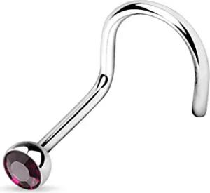 1,0mm Nasenstecker gebogen Zirkonia Kristall Strass Nasen Piercing Spirale Stud Nasenring Z325 Farbe Violett/Lila