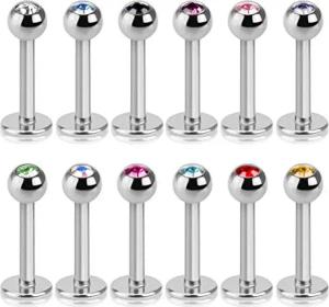 12er Set Labret Piercing Stecker Lippenpiercing Zirkonia Kristall Edelstahl Tragus Helix Ohr Z245