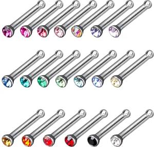 20er Set Nasenpiercing 0,8mm 20 Farben Zirkonia Kristall Nasenstecker Z240