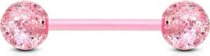 Barbell Piercing Stab Zungenpiercing Kunststoff Glitter Glitzer Kugeln Acryl flexibel Brustpiercing Z314, Rosa