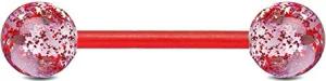 Barbell Piercing Stab Zungenpiercing Kunststoff Glitter Glitzer Kugeln Acryl flexibel Brustpiercing Z314, Rot