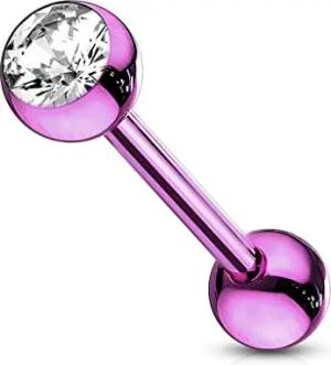 Barbell Piercing Stab Zungenpiercing Ohrpiercing Stecker Hantel Chirurgenstahl 316L beschichtet Zirkonia Z309, lila