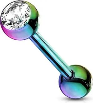 Barbell Piercing Stab Zungenpiercing Ohrpiercing Stecker Hantel Chirurgenstahl 316L beschichtet Zirkonia Z309, rainbow