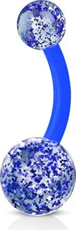 Bauchnabel Piercing Banane Barbell flexibel Kunststoff Glitzer Kugeln Acryl Z319, blau