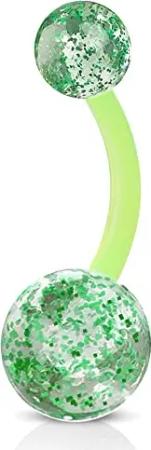 Bauchnabel Piercing Banane Barbell flexibel Kunststoff Glitzer Kugeln Acryl Z319, grün