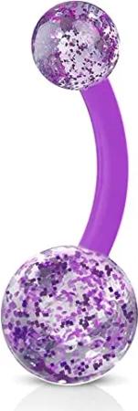 Bauchnabel Piercing Banane Barbell flexibel Kunststoff Glitzer Kugeln Acryl Z319, lila