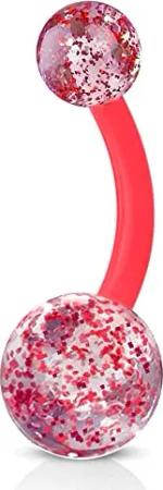 Bauchnabel Piercing Banane Barbell flexibel Kunststoff Glitzer Kugeln Acryl Z319, rot