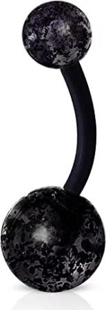 Barbell Piercing Stab Zungenpiercing Kunststoff Glitter Glitzer Kugeln Acryl flexibel Brustpiercing Z314, Schwarz