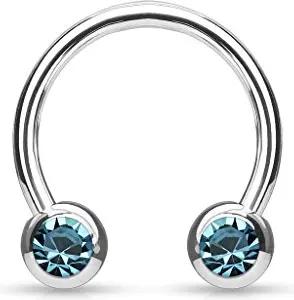 Hufeisen Piercing Chirurgenstahl 316L Frontkristall Brustpiercing Septumpiercing Z529, Aqua,1,2x10x4mm