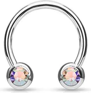 Hufeisen Piercing Chirurgenstahl 316L Frontkristall Brustpiercing Septumpiercing Z529, Rainbow,1,2x10x4mm