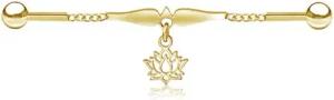 Industrial Piercing Scaffold Kette Anhänger Lilie Lotus Ohr Piercing gold silber Z595, Lotus gold
