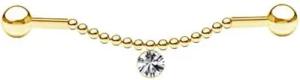 Nippelpiercing Brustpiercing Brustwarzenpiercing Barbell Piercing Kette Kettchen Piercingstab Hantel Z573, gold