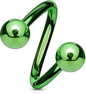 Lippenpiercing Chirurgenstahl Labret Spirale Twister Doppelkugel Z400, grün 1,2x10x4mm