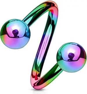 Lippenpiercing Chirurgenstahl Labret Spirale Twister Doppelkugel Z400, regenbogen 1,2x10x4mm
