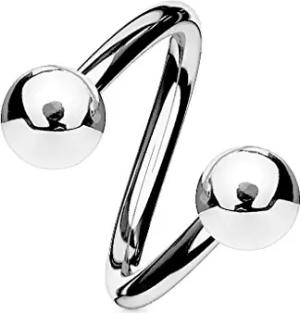 Lippenpiercing Chirurgenstahl Labret Spirale Twister Doppelkugel Z400, Silber 1,2x10x3mm