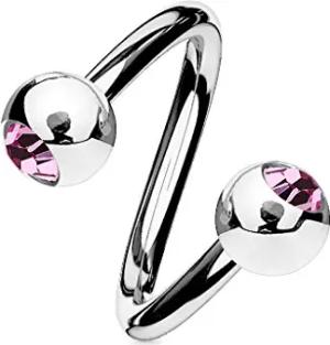 Lippenpiercing Chirurgenstahl Labret Spirale Twister Kristall Doppelkugel Twist Z336, Rosa