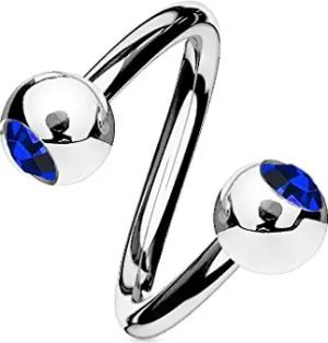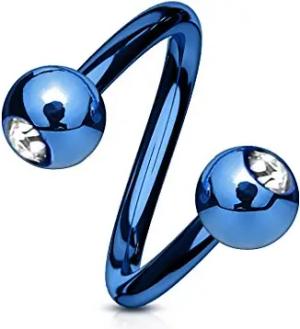 Lippenpiercing Chirurgenstahl Labret Spirale Twister Kristall Doppelkugel Twist Z405, Dunkelblau