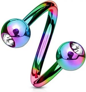Lippenpiercing Chirurgenstahl Labret Spirale Twister Kristall Doppelkugel Twist Z405, Regenbogen