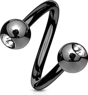 Lippenpiercing Chirurgenstahl Labret Spirale Twister Kristall Doppelkugel Twist Z405, Schwarz