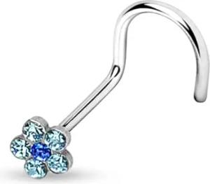 Nasenpiercing gebogen 0,8mm Nasenstecker Zirkonia Kristall Blume Blüte Nasenring Z328, blau