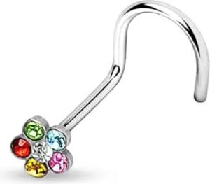 Nasenpiercing gebogen 0,8mm Nasenstecker Zirkonia Kristall Blume Blüte Nasenring Z328, bunt
