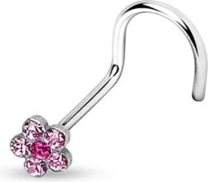Nasenpiercing gebogen 0,8mm Nasenstecker Zirkonia Kristall Blume Blüte Nasenring Z328, pink/rosa