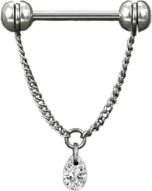 Nippelpiercing Brustpiercing Brustwarzenpiercing Barbell Piercing Kette Kettchen Zirkonia Piercingstab Hantel Z573, Kristall klar