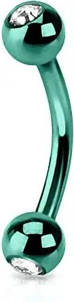 Piercing Banane mit Kristall Kugeln Edelstahl verschiedenen Farben und Größen Z403, grün, 1,2 x 10 x 4mm