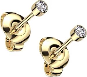 Titan Ohrstecker Ohrringe 3mm Kristall Zirkonia rund Damen Herren Damenohrstecker Z563 gold, 3mm
