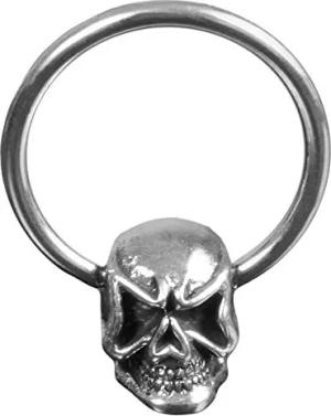 Vintage Piercing BCR Klemmring Chirurgenstahl mit Messing Totenkopf Z469, D6; 1,6x12mm