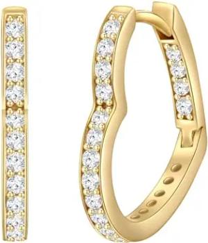 Damen Creolen aus 925/- Sterling Silber gelbvergoldet mit Zirkonia weiß Herz - Klappcreolen Herzform Gelbgold