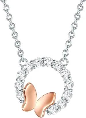 Damen Halskette aus 925/- Sterling Silber mit Schmetterling rosévergoldet und Kreis mit Zirkonia - Silberhalskette Motivkette