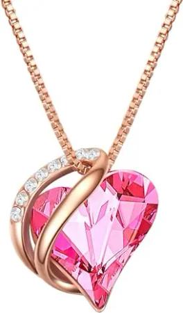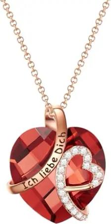 Damen Halskette mit Herz Anhänger Messing Zirkonia Weiß Glasstein rot -Modeschmuckhalskette mit Anhänger Ich Liebe Dich