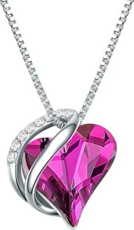 Damen Kette aus 925/- Sterling Silber verziert mit Kristallen Herzschliff Brillantschliff