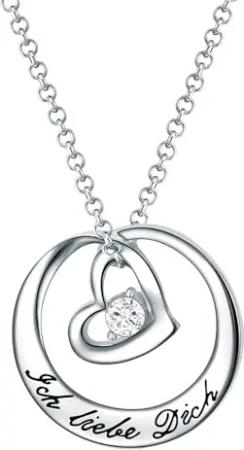 Damen-Kette mit Anhänger Herz Ich liebe Dich Silberfarben Glaskristall weiß Herz-Anhänger Kette mit Gravur Geschenk für Valentinstag