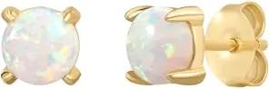 Damen Ohrstecker 925/- Sterling Silber gelbvergoldet 14 Karat mit Opal (synth.) weiß