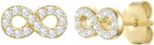 Damen Ohrstecker 925/- Sterling Silber gelbvergoldet 14 Karat mit Zirkonia weiß Infinity