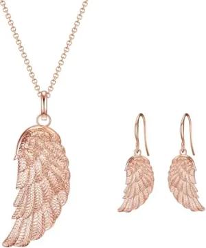 Damen Schmuck-Set (Kette + Ohrhänger) aus Messing roségold Engelsflügel Anhänger - Modeschmuckkette Modeschmuckohrhänger Motivschmuck