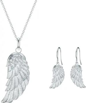 Damen Schmuck-Set (Kette + Ohrhänger) aus Messing silber Engelsflügel Anhänger - Modeschmuckkette und Modeschmuckohrhänger Motivschmuck