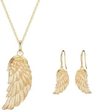 Damen Schmuck-Set (Kette + Ohrhänger) aus Messing vergoldet Engelsflügel Anhänger - Modeschmuckkette Modeschmuckohrhänger Motivschmuck