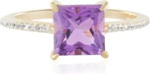 Amethyst Silberring vergoldet mit 1,5 Karat Uruguay Amethyst Quadratschliff und 24 Zirkonen Rundschliff, moderner eleganter violetter Damenring Gr.18-20