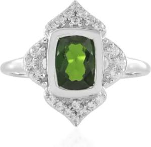 Diopsid Ring 1,128 ct mit Antikschliff aus Russland, Zirkon Akzente, 925 Sterling Silber platinplattiert, moderner eleganter grüner Edelstein Schmuck