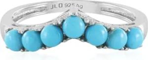 Dornröschen Türkis Ring aus 925er Silber mit Platin-Finish, 7 runde Cabochon Türkise aus USA, 0,725 ct, eleganter Wellen-Silberring, Türkisblau