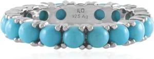 Dornröschen Türkis Silberring, 18 runde Cabochon Steine, 2,11 ct, plattiertes 925er Sterlingsilber, modernes elegantes Design, leuchtend türkisblau, Größe 16-20